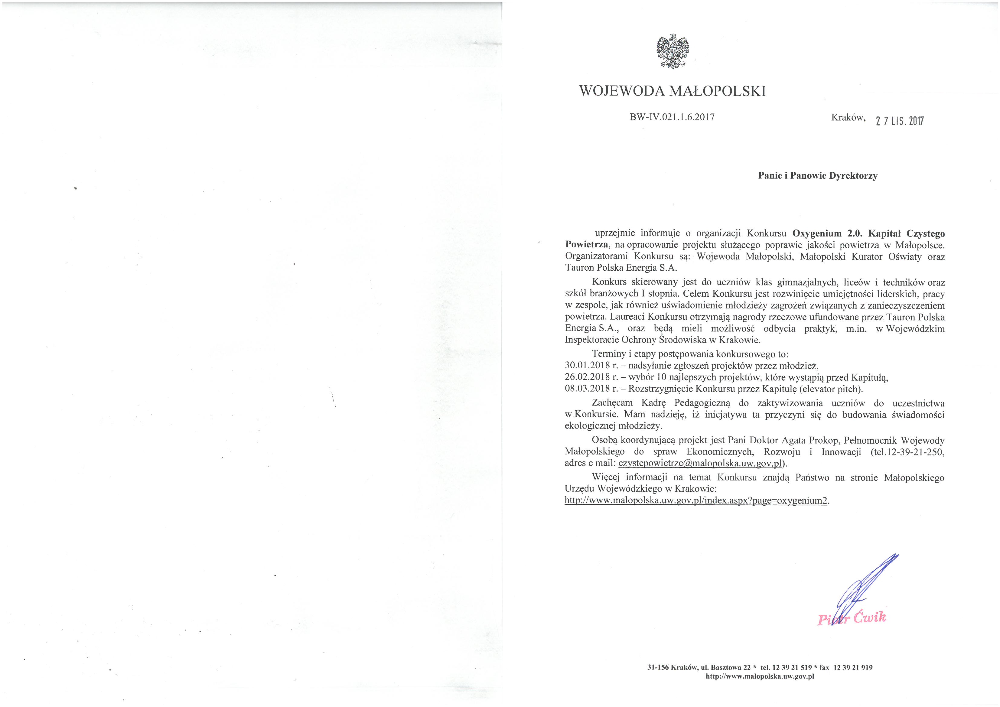 Zapraszamy do udziału w Konkursie Oxygenium 2.0 Kapitał Czystego Powietrza dotczącym poprawy jakości powietrza w Małopolsce.