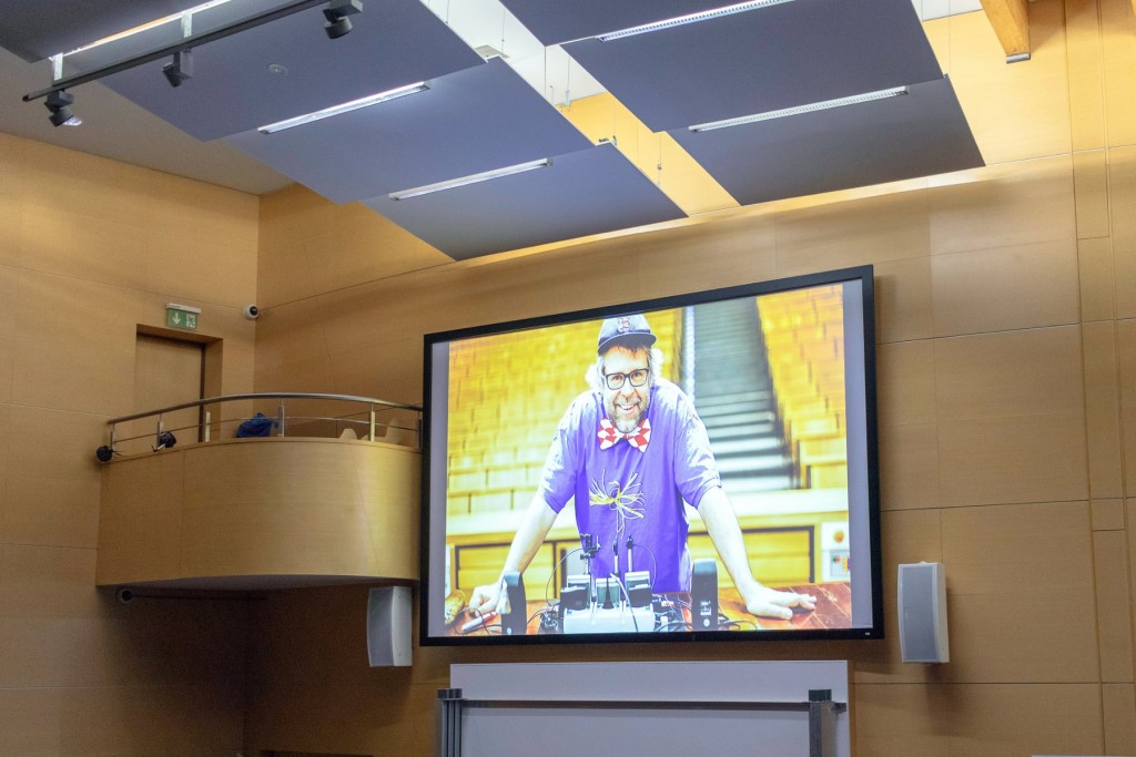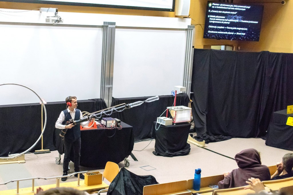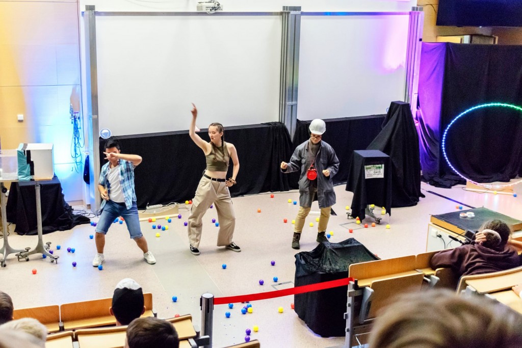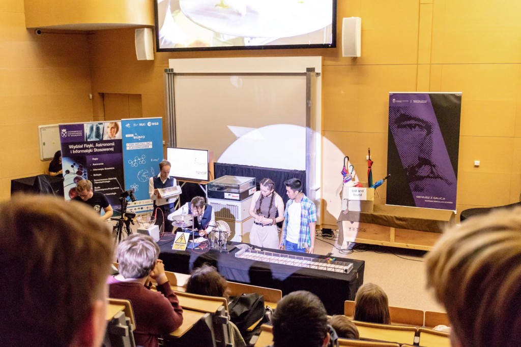 Jej założycielem jest prof. Herbert (Herbi) Dreiner – znany popularyzator nauki, laureat licznych nagród dydaktycznych oraz autor wielu publikacji naukowych i popularyzatorskich. Zaangażowani przez niego studenci fizyki przygotowali spektakl pt. „What’s (the) Matter?” łączący fabułę teatralną z doświadczeniami na żywo. Wraz z głównymi bohaterami podróżowaliśmy w czasie i przestrzeni odwiedzając m.in. laboratorium Rutherforda w Manchesterze czy tunel Wielkiego Zderzacza Hadronów (LHC) w CERN. Od historii odkryć i demonstracji zjawisk aż po działanie współczesnych laboratoriów badających materię - to tematyka tego wydarzenia popularnonaukowego, a wszystko to obrazowo i z dużą dozą poczucia humoru zaprezentowane przez członków grupy Bonn Physikshow. Była też okazja, aby udoskonalić swoje umiejętności językowe, gdyż cały pokaz był w języku angielskim.