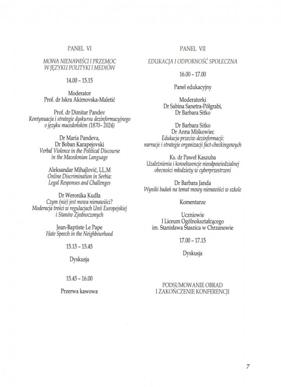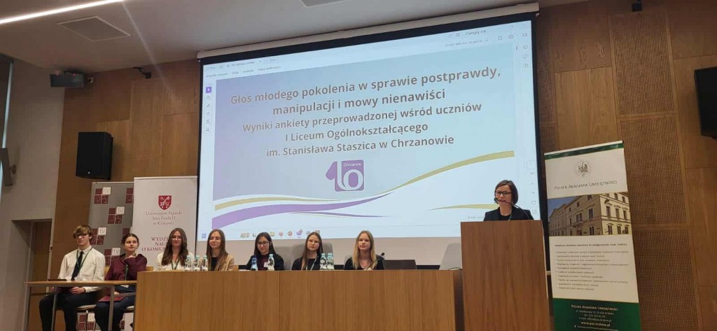 17 października 2025 r. zespół młodych naukowców z I Liceum Ogólnokształcącego im. S. Staszica w Chrzanowie w składzie: Elżbieta Janda, Martyna Chochół, Julia Gębala, Hanna Rak, Martyna Biedermann, Hanna Firek i Jan Kubic wystąpił z referatem „Wyniki badań na temat mowy nienawiści w szkole” pod kierunkiem Pani Prof. Barbary Jandy na konferencji „Transmedialne i multimodalne narracje i dyskursy – postprawda, mowa nienawiści, manipulacje w kulturze, nauce, polityce i mediach”, na Uniwersytecie Komisji Edukacji Narodowej w Krakowie.