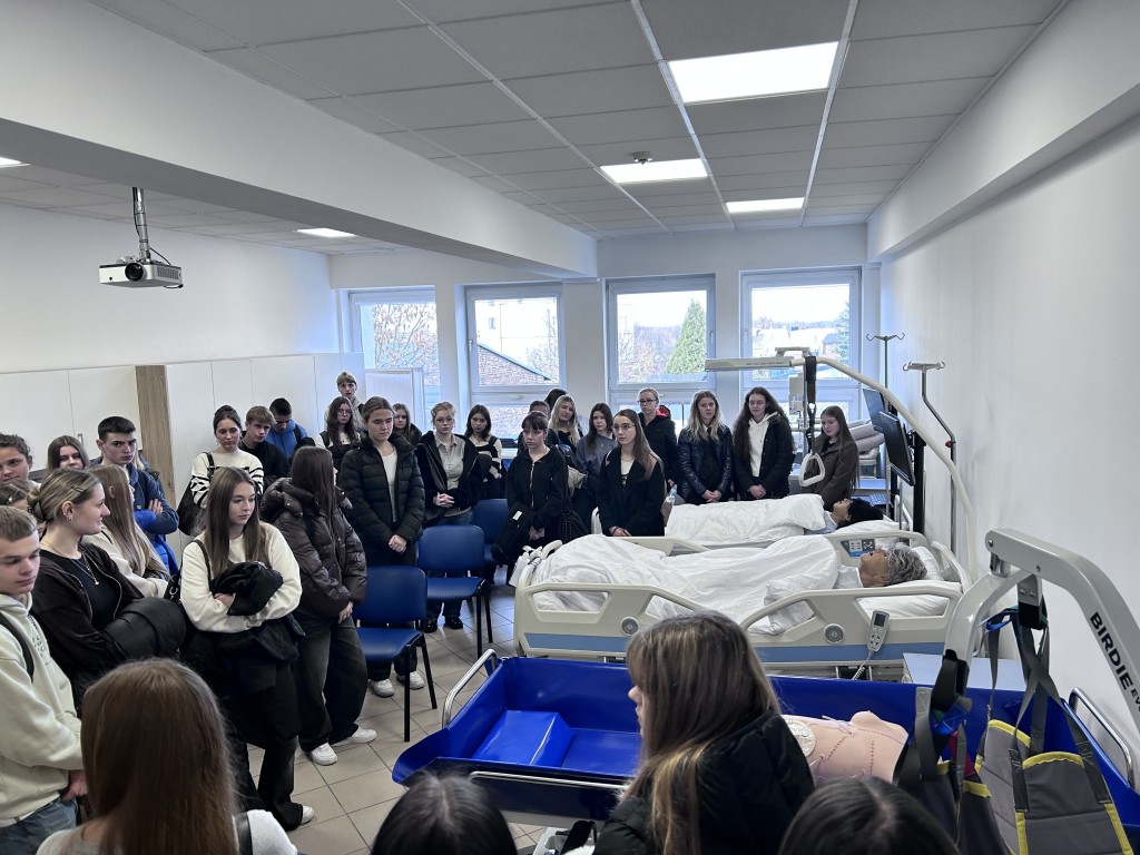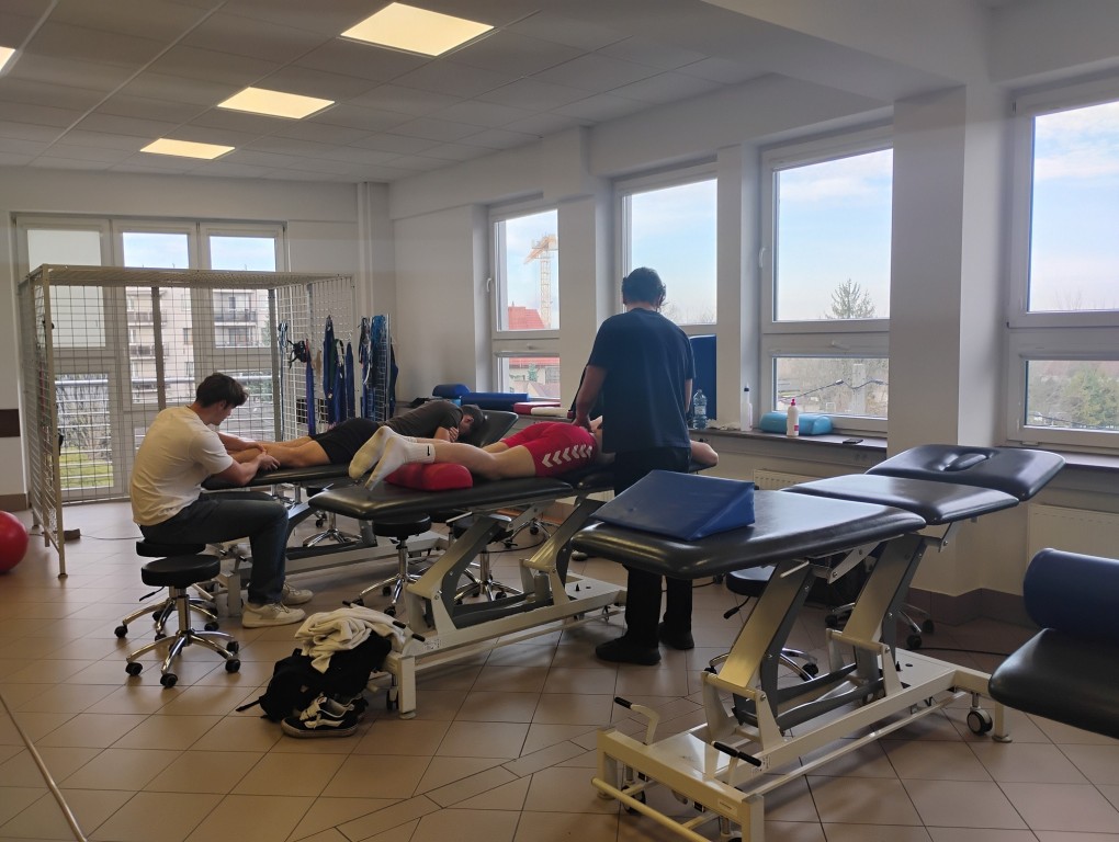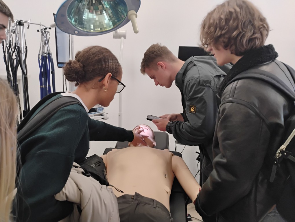 Następnie uczniowie zwiedzili Centrum symulacji medycznej pod kierunkiem dr Piotra Migasa – sale ćwiczeniowe, w których uczą się studenci kierunków medycznych.