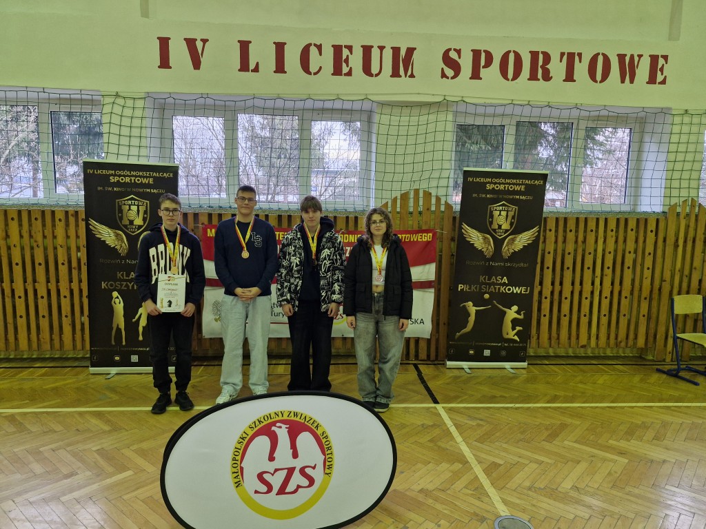 Równo rok temu w Nowym Sączu nasi szachiści wywalczyli tytuł Wicemistrzów Województwa. Dzisiaj, tj. 5 grudnia obiekt sportowy przy 4 LO w Nowym Sączu ponownie okazał się szczęśliwy dla naszej Drużyny szachowej. Po pasjonującej grze trzymającej w napięciu tak zawodników jak i trenerów aż do ostatniego spotkania Ekipa ze Staszica w składzie: Adam Bartoszczuk 3a, Piotrek Kwapisz 2a, Irena Pajer 2b oraz Sebastian Baliś 1a wywalczyła 3 miejsce w Województwie Małopolskim. Tym samym potwierdzili swoją wysoką, stabilną formę sportową, a cały czas są przecież bardzo młodą Ekipą! Sami zresztą mówią, że dzisiejszy sukces to nie jest jeszcze ich ostatnie słowo...)