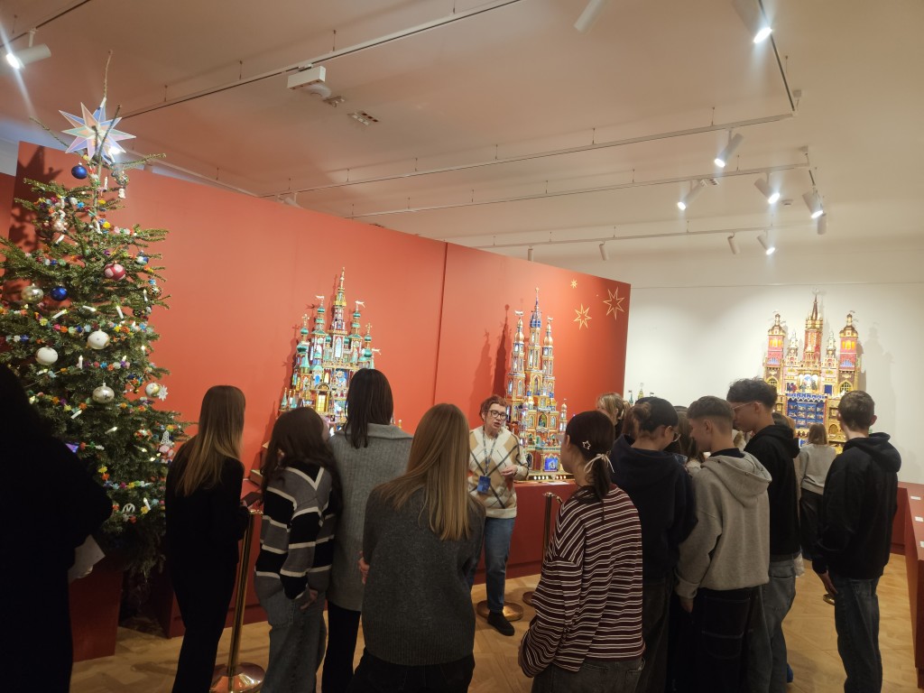 Pierwszym punktem naszej wyprawy był Pałac „Krzysztofory” – główna siedziba Muzeum Krakowa. Pod czujnym okiem przewodnika mieliśmy okazję podziwiać pokonkursową wystawę szopek krakowskich.