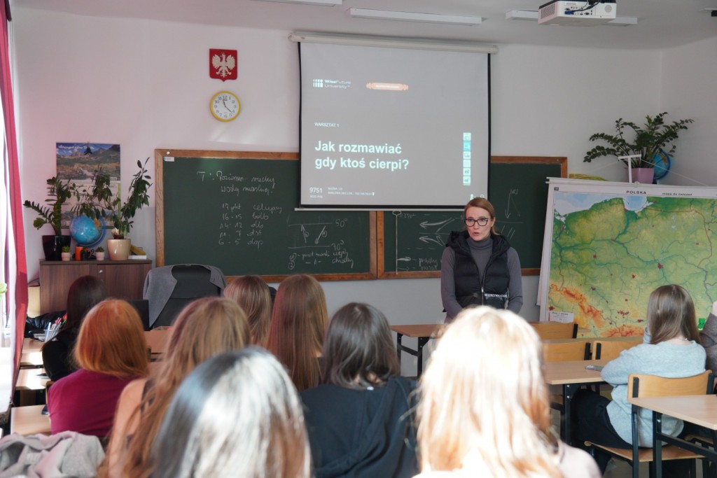 Dziękujemy za realne wsparcie zdrowia psychicznego naszych uczniów Fundacji Wise Future University oraz prowadzącym prelekcję i warsztaty – Paniom Annie Jurczak, Aldonie Stach i Annie Polak. Dziękujemy za zainteresowanie i wartościowe materiały. To był dzień rozmowy, uważności i wsparcia.